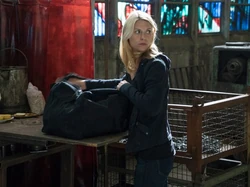 Carrie seeks out Astrid in a parking garage, not knowing who else to trust. She shows her the photo of the man who shot Quinn and explains that it is related to the people who want her dead. Then they talk about Quinn and Astrid demands to be allowed to see him, which Carrie doesn't agree to. Astrid still wants to help her for Quinn's sake and keeps the photo of the man with her. Quinn is looking at his gunshot wound in the mirror when Carrie comes back. With his pain increasing, Carrie calls Jonas, whose sister is a doctor and can get him some medication.